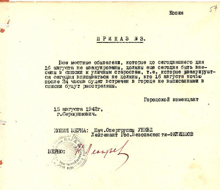 Циркуляр НКВД СССР от 18 февраля 1942 года "Об организации оперативно-чекистской работы на освобожденной территории" перечислял и ряд категорий населения, подлежащих первоочередному преследованию. В частности, речь шла о женщинах, вышедших замуж за офицеров, солдат и чиновников Вермахта.