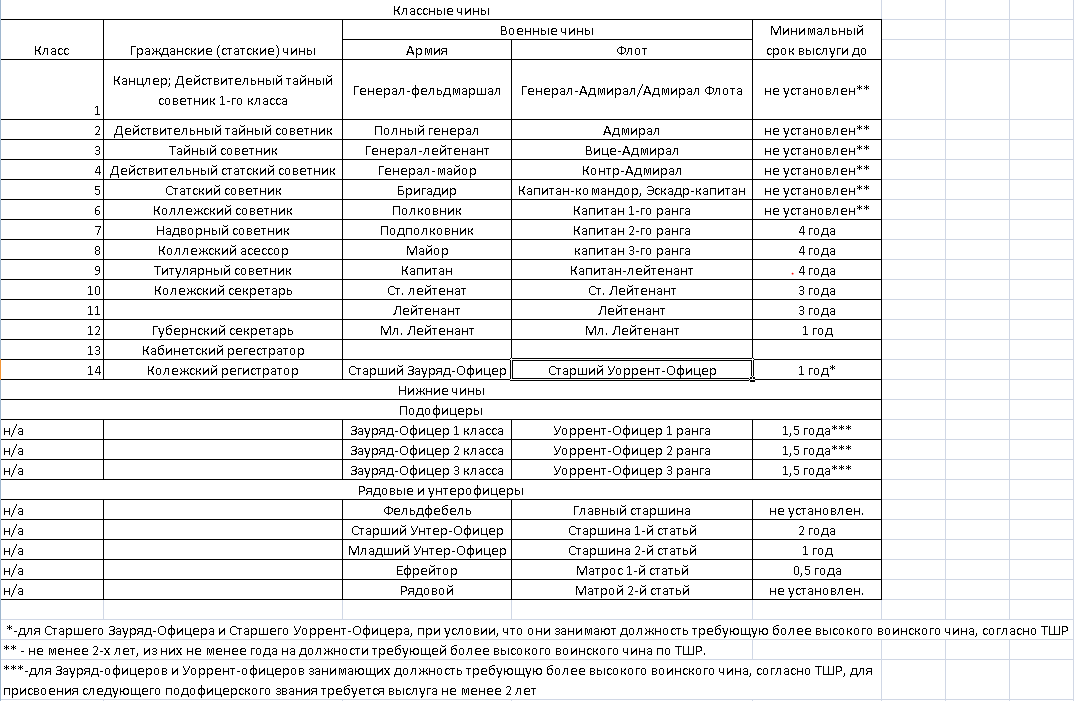 Вот ещё, вдруг пригодиться, моё виденье новой табели о рангах (правда я придворные чины забыл, так я в них и не понимал никогда :) )