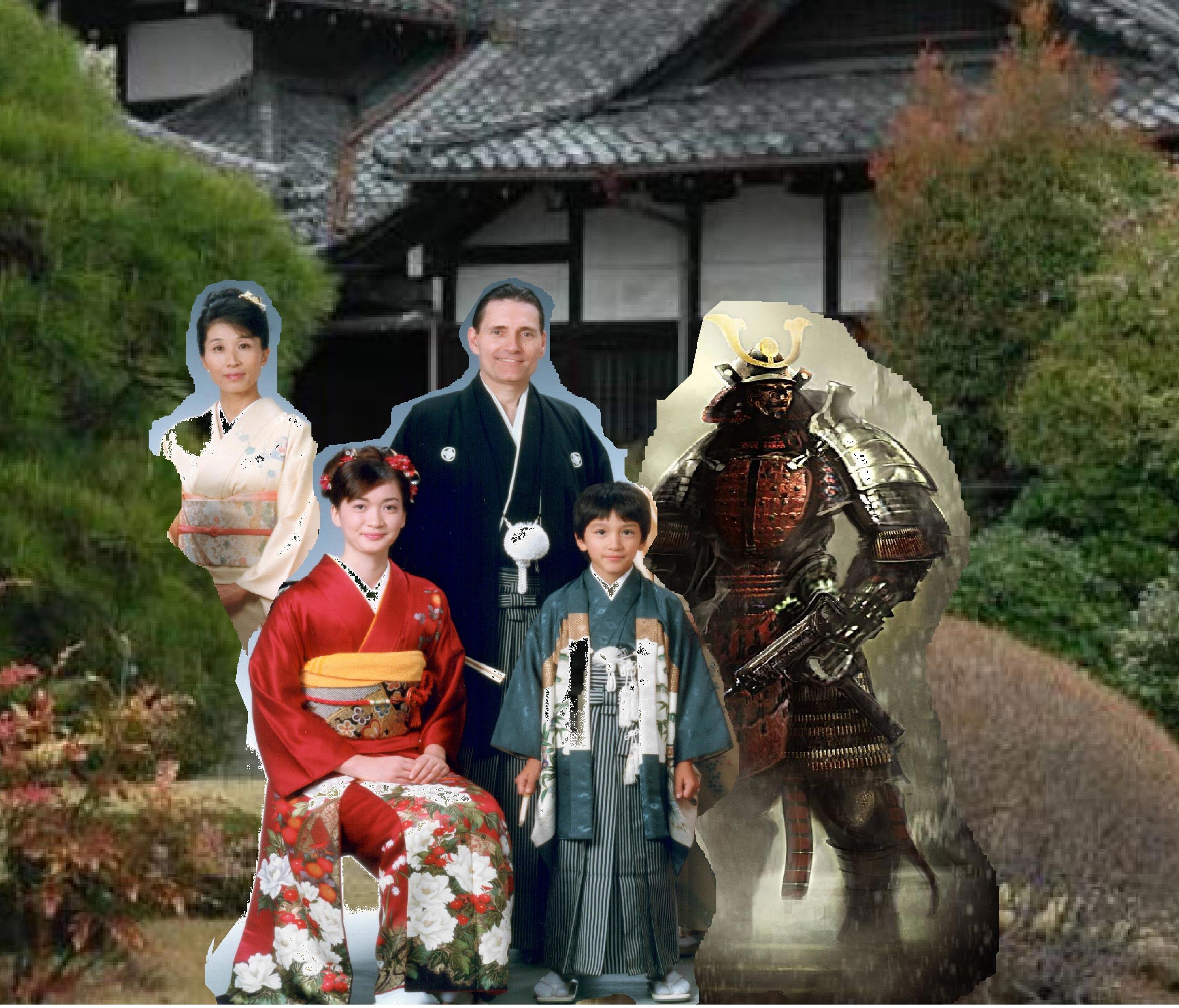 семья на фоне старого особнячка , отобразить особенности героев , а рядом образ будущего демона который поддерживает мальца