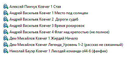 Это то, что у меня в библиотеке. Ну и естественно еще 1 новый автор. Я давно не проверял серию, чего то может не хватать. Я всё же стараюсь держать в библиотеке законченные книги.