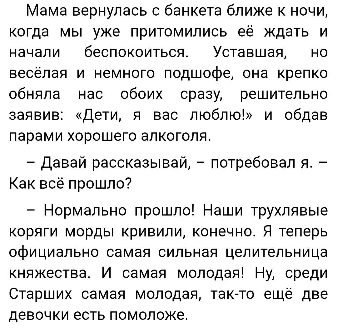 Начинали бодро, последнее время у меня стойкое ощущение, что Книга превратилась в женский роман-тягомотину. Нас доят как хомяков??? Не, я не спорю, оно может в целом будет смотреться хорошо когда прочтёшь глав 10-15 за раз... Но тогда это явно не формат Автор Тудей.. А если так, то будет утрачена материальная часть сделки. Те кто поумнее, через пару лет книгу просто скачают бесплатно...