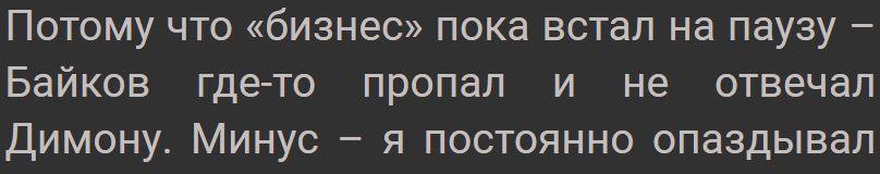Уточните что Олег Байков где-то пропал, а то я изначально подумал что это опечатка, а потом подумал (если правильно подумал) что Байков-старший не отвечал Байкову-младшему. (эта правка исключительно по желанию, может я один такой тормоз)