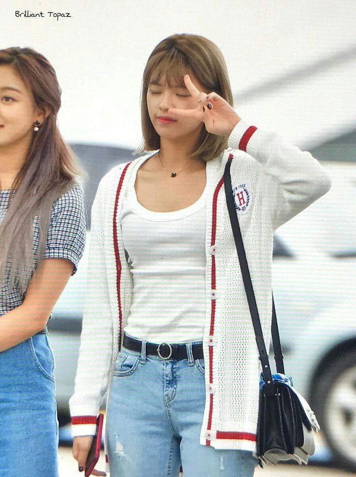 Девушка inspired Korean Idol Jeongyeon from TWICE с короткой стрижкой пикси и голубыми глазами.