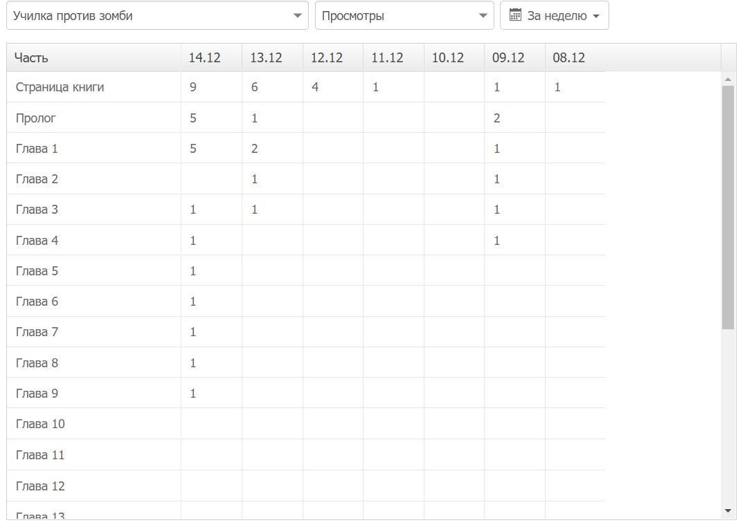 Ого, аж целая рецензия, вау, я польщена, но, давайте я вам покажу статистику у книги. Ну и напомню, что об этой книге вы узнали вчера, то есть 13 декабря.