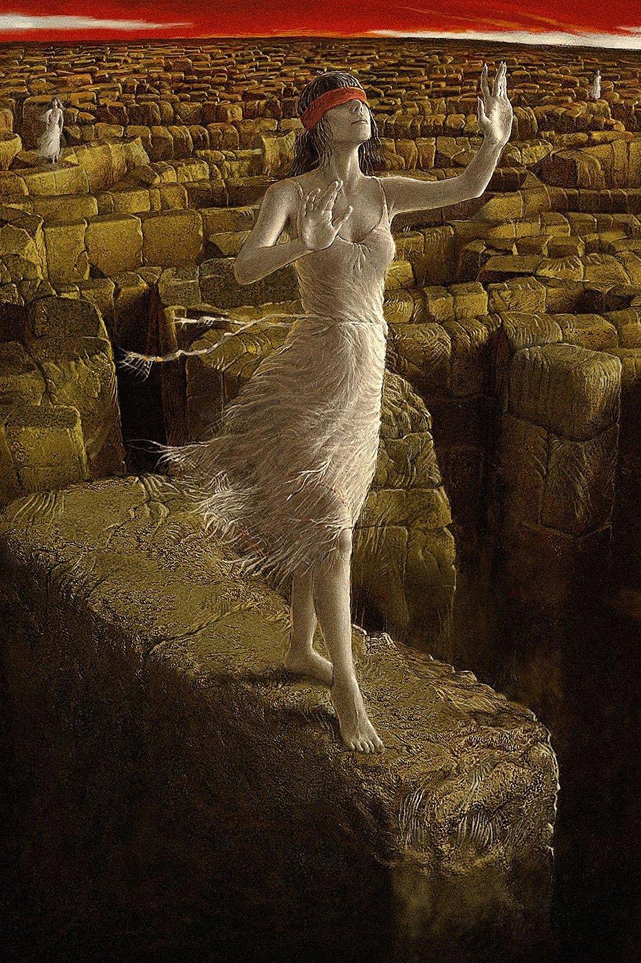 Возникли образы во тьме, звуки, ощущения: огромная сырая пещера; нечеловеческие голоса сливались с дыханием пещеры. Взмах крыльев, прорезающих тяжелый воздух. Полёт птицы. Сложные каменные механизмы мрачной крепости. Яркий свет голубой жидкости. Крест с петлёй наверху — Анкх.