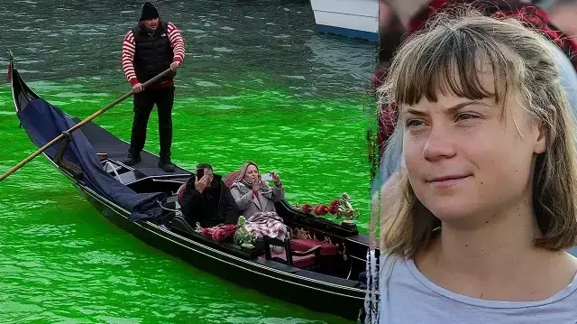Грета Тунберг участвовала в акции, в ходе которой вода в Grand Canal в Венеция была окрашена в зелёный цвет.