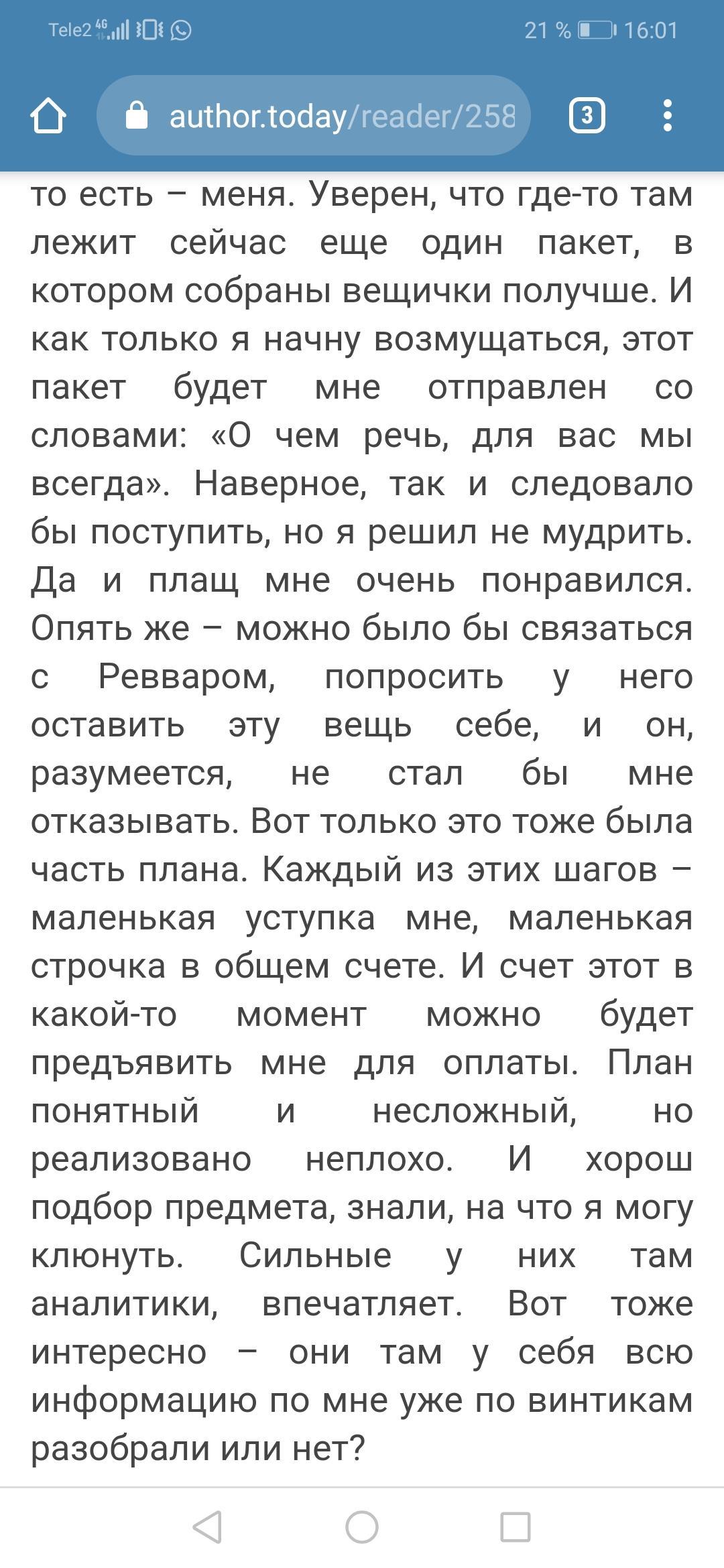 Есть такой момент в книге. Якобы любовная линия между Кифом и Викой. Молодая девка спит с мужиком в возрасте, потом его затягивает в водоворот событий и все. Он в игре, она в редакции, чаще всего они даже не общаются в стиле привет-пока за день. Единственное, что их связывает это холодильник, куда она еду ложит, а он извлекает. При этом мелькают фразы о браке и детях между людьми, который в мегу раз в месяц дай бог выбираются. Лав стори о меркантильное бабенке и мужике с зоной комфорта состоящей из "борща и титьки". Дальше. Сюжет не плох, событий много, но подавляющее большинство этих событий выглядит притянутыми за уши. Квест на богов такой секретный просто тайна сей вселенной. Но любое задание, куда не плюнь рассчитано на коллективное прохождение. Начальство ты должен это и это и то. А мы пока пойдём оплатим и замнем 100 убийств, но социалку, прости, не уберём. Страна не та, уголовный кодекс в ней покупается, а соц. квест нет. Свистопляска вокруг него тоже попахивает маразмом, но надеюсь дальше этот момент раскроет автор, и алкоголик на полшишечки с так себе заданием не тянущем на масонский заговор без каких-либо достижений и целей в жизни, таки станет настоящим героем сей саги и будет ясно за что его так не любят и преследуют злодеи.
