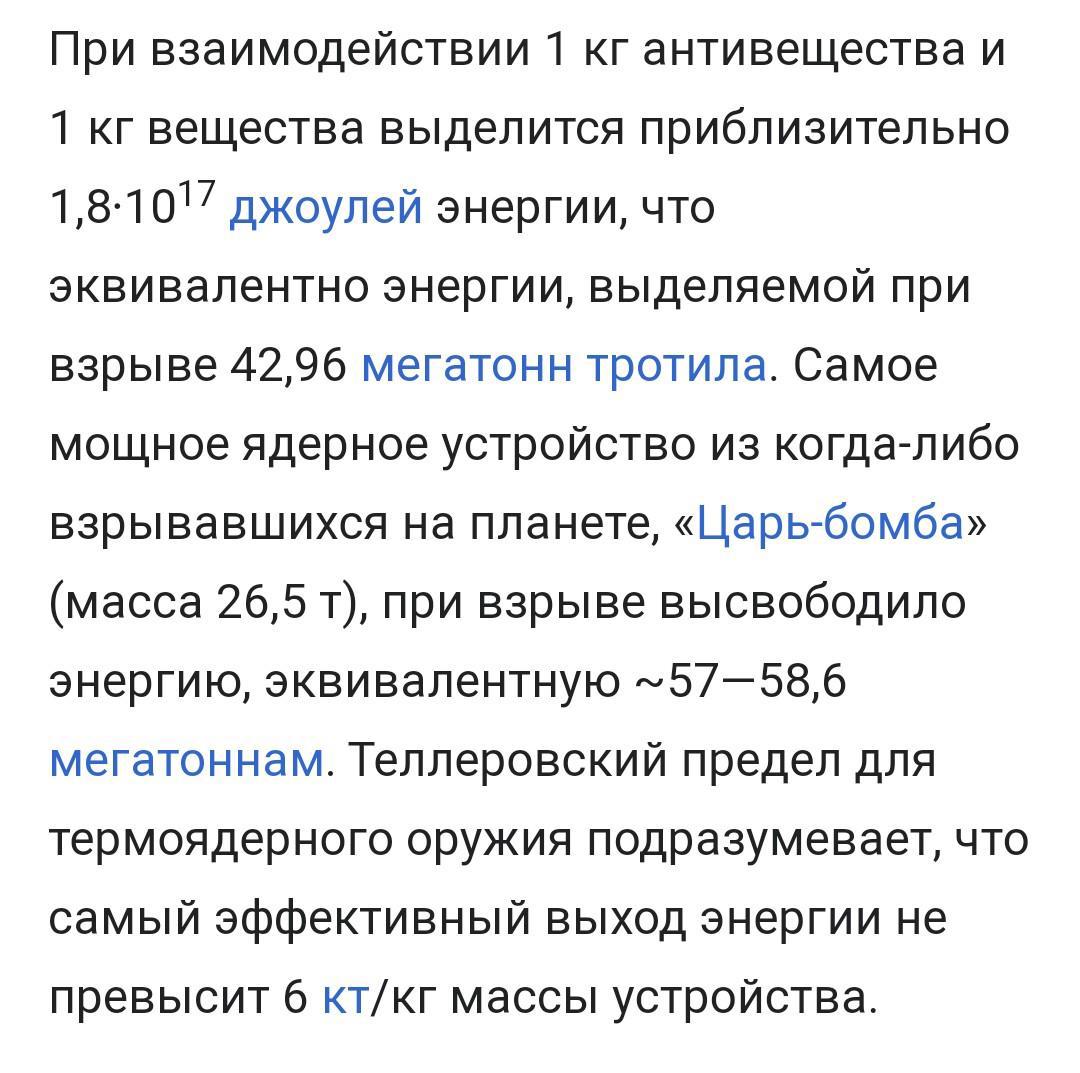 Здравствуйте, спасибо, что оставили комментарий к моей книге. Хочу сказать, что это все еще научная фантастика. Поэтому пока есть слово "наверняка", а не точно, я могу обыграть по своему эту интересную тему. Энергии выделяется при аннигиляция просто гигантское количество. Они пытаются найти способ, как ее добыть. А строчку про 1г антивещества =40кг Урана и правда уберу, она действительно очень спорная, спасибо