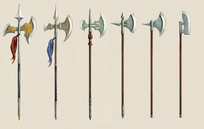 Алебардой рубят из-за спин шитовиков, а боевой косой либо колют как копьем , либо режут слабобронированные цели, тоже из-за спин щитовиков