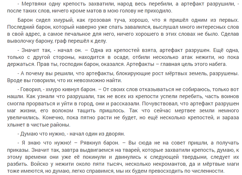 На самом деле, очень увлекательное чтиво, по нескольку раз на дню проверяю обновления, в надежде на появление заветных красных циферок в правом верхнем углу экрана. Герои живые, целостные. Пожалуйста, уважаемый автор, продолжайте писать!