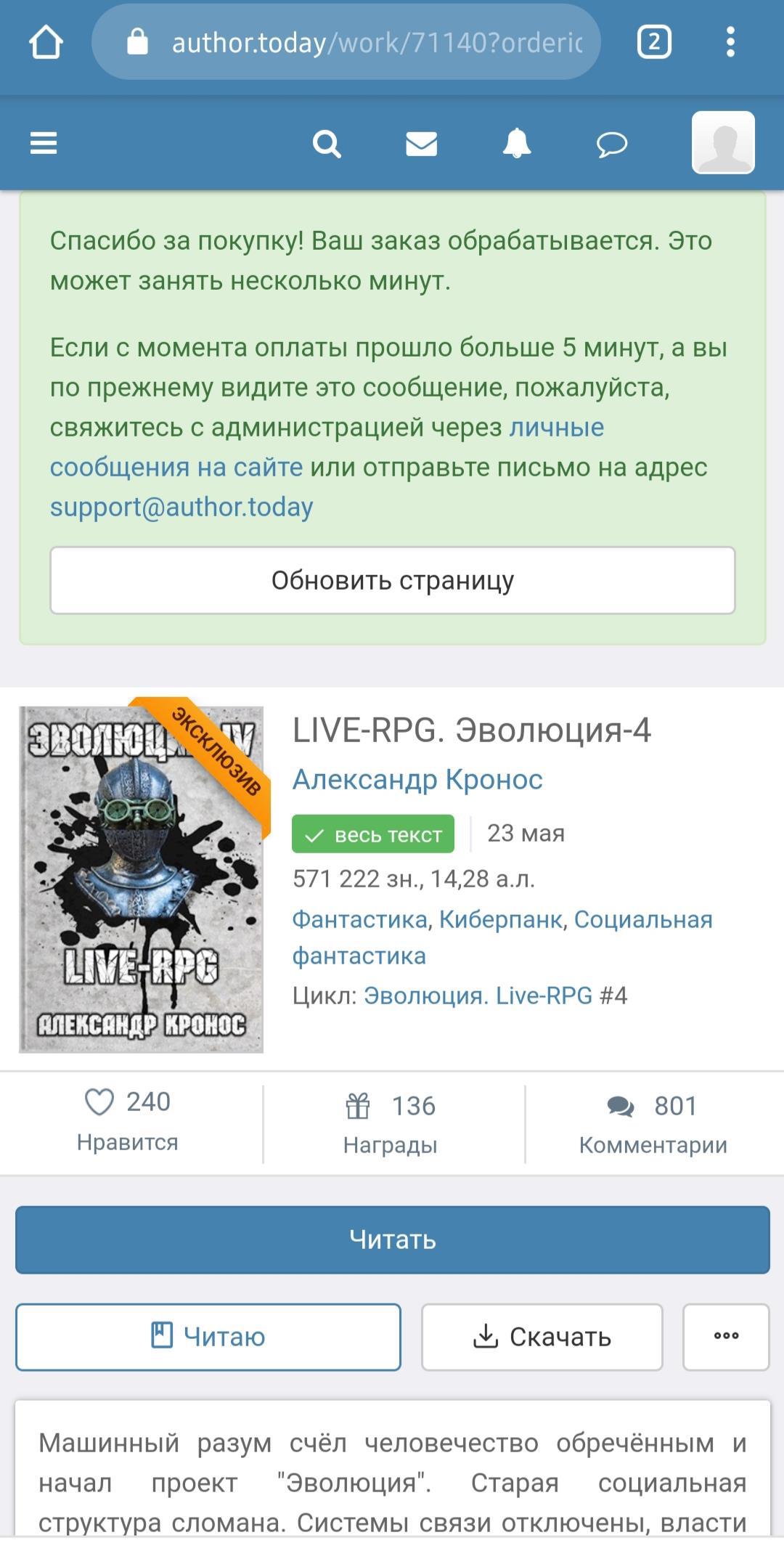 🛸, под их контролем вся планета Земля что не может не радовать. Александр спасибо Вам огромное за такую книгу, успехов и вдохновления Вам в дальнейшем написании книг. Начиная с первой книги Эволюции мы все каждый день, каждый час, каждую минуту ждали новых глав, но к сожалению и эта замечательная история "Бомжа" и его боевой группы "Бродяги" закончилась с хорошим концом. Также хотелось бы отметить, что у Вас Александр просто замечательно и творчески получается писать книги данного жанра, не переставайте писать такие книги.