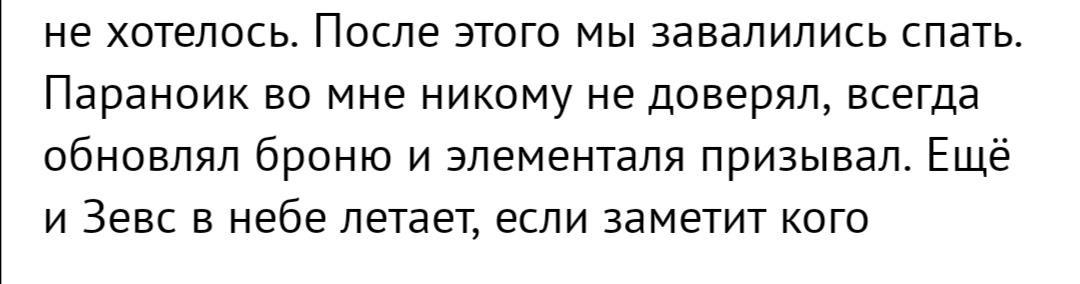 Понимаю про выкладку "по килознакам", но я на другое внимание хотел обратить: мне понравилось что в 29 главе рассказываемая история богатая, но компактная, подаётся живо, увлекает. Прям эталон. Особенно для таких жёстких рамок в 10к знаков. Вот и в 30-й, имхо, лучше было бы историю (до диалога) подавать не через слова автора и размышления ГГ, а аналогично - преимущественно через действия и диалоги.