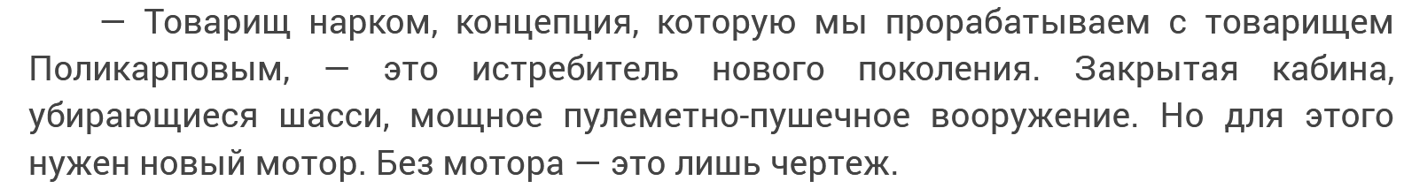 Это шутка такая, да? И-16 УЖЕ с начала 30х с убирающимся шасси, закрытой кабиной, на некоторых модификациях вполне себе с пушками, самолет конструкции, сюрприз! Поликарпова. Будь Николай Николаевич менее культурным человеком, он бы этого всезнайку послал бы далеко и надолго, а так, наверное, лишь подумал о том видели ли это комкор хоть один самолет вживую или только книги читал...Особенно восхитили - признаки нового поколения, абсолютно верные, только актуальные для начала 30-х для И16 на момент создания, действительно ставшим прорывным самолетом, не только в советском, но и мировом авиастроении..