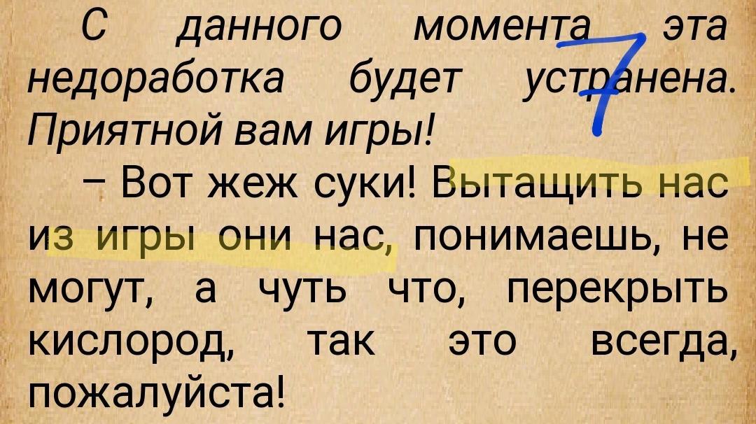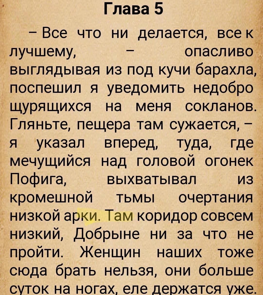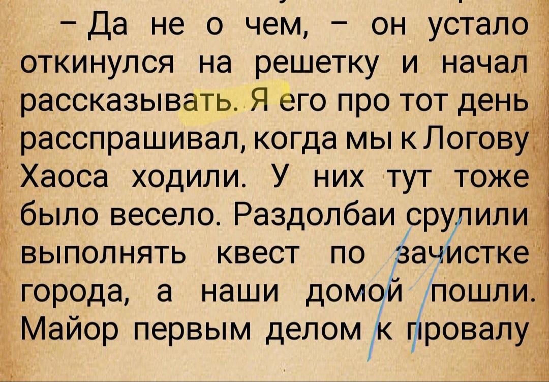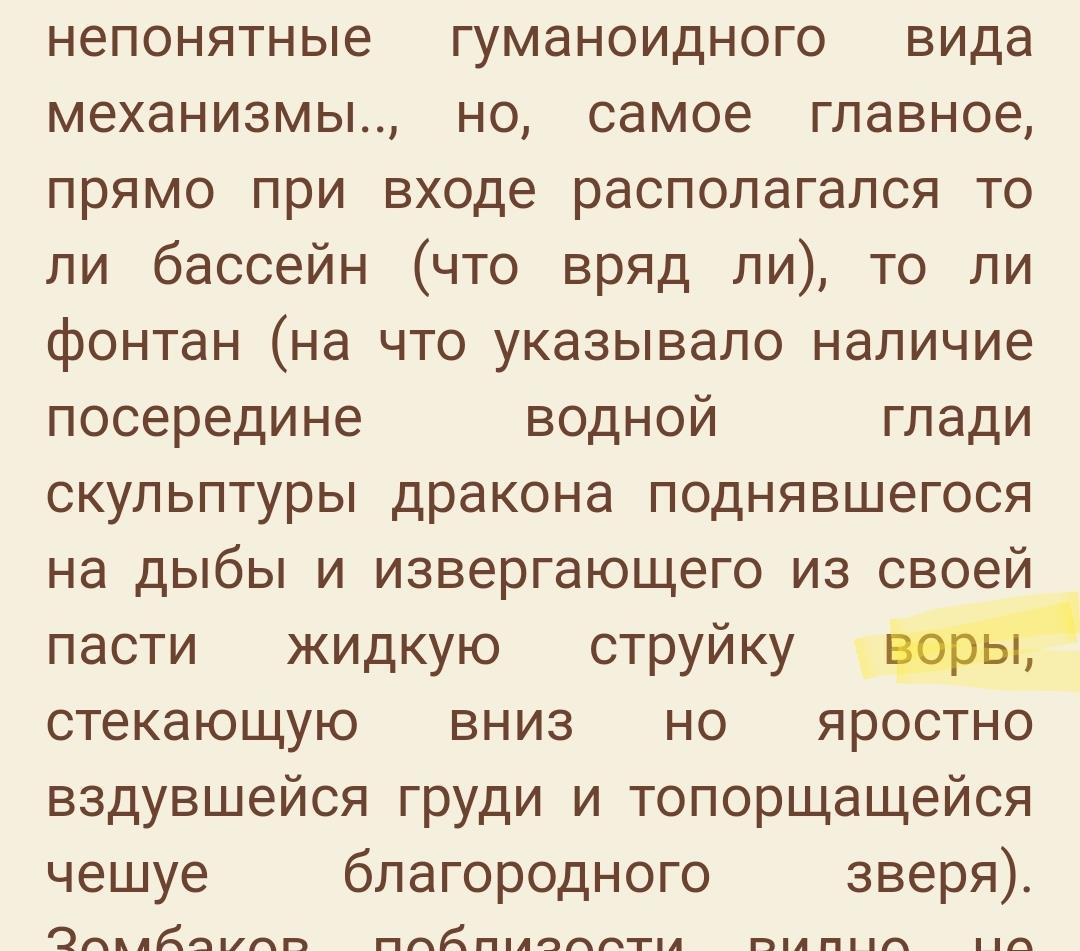 "Узкоколейка занимала почти всю ширину пола, а идти по шпалам было ужасно неудобно. Никогда не понимал, почему нельзя делать шпалы на удобном для ходьбы расстоянии. Если на каждую наступать, шаг получался слишком маленьким, через одну, слишком длинным. Может это рассчитано на гномов?"