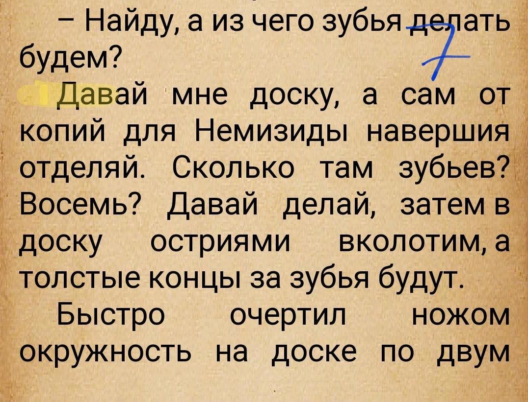 Тут вопрос. Надо на страницу диалог отматывать и читать. Речь идет о платформе, т.е. женский род. Снача речь о платформе и везде написано на ней, на неё и т.д. А потом появляется мужской род. Может я и ошибаюсь. В тексте также есть "Осадный арбалет", но по тексту (на страницу назад) он везде звучит как "Немезида", т.е. тоже женский род. Если вам не сложно, то после проверки напишите мне, пожалуйста, ошиблась я или нет:)