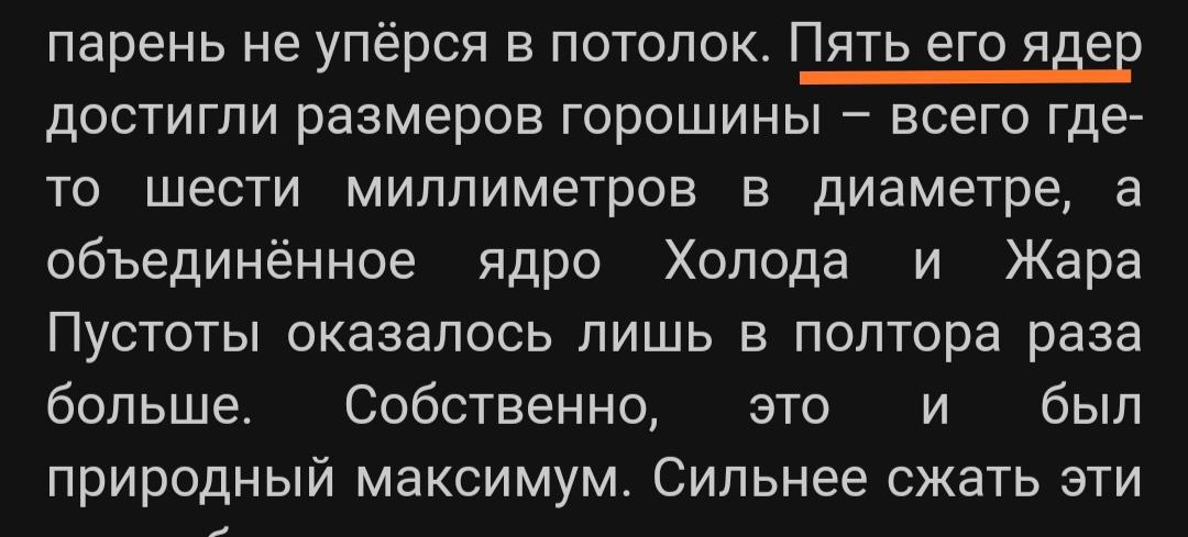 4 ядра (меч, пространство, Инь и Ян) и одно объединенное ядро ХП и ЖП
