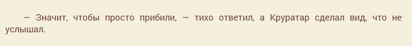Я понял - там дальше указано, но обычно сразу даётся понять, кто отвечает. А тут сначала человек говорит и только в следующем абзаце сообщают говорившего. Ну либо может я невнимательно читал. Всякое может быть.