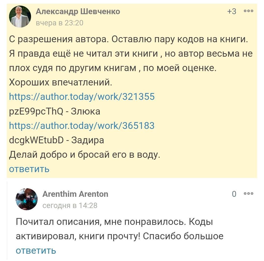 С разрешения автора. Оставлю пару кодов на книги. Я правда ещё не читал эти книги , но автор весьма не плох судя по другим книгам , по моей оценке. Хороших впечатлений.