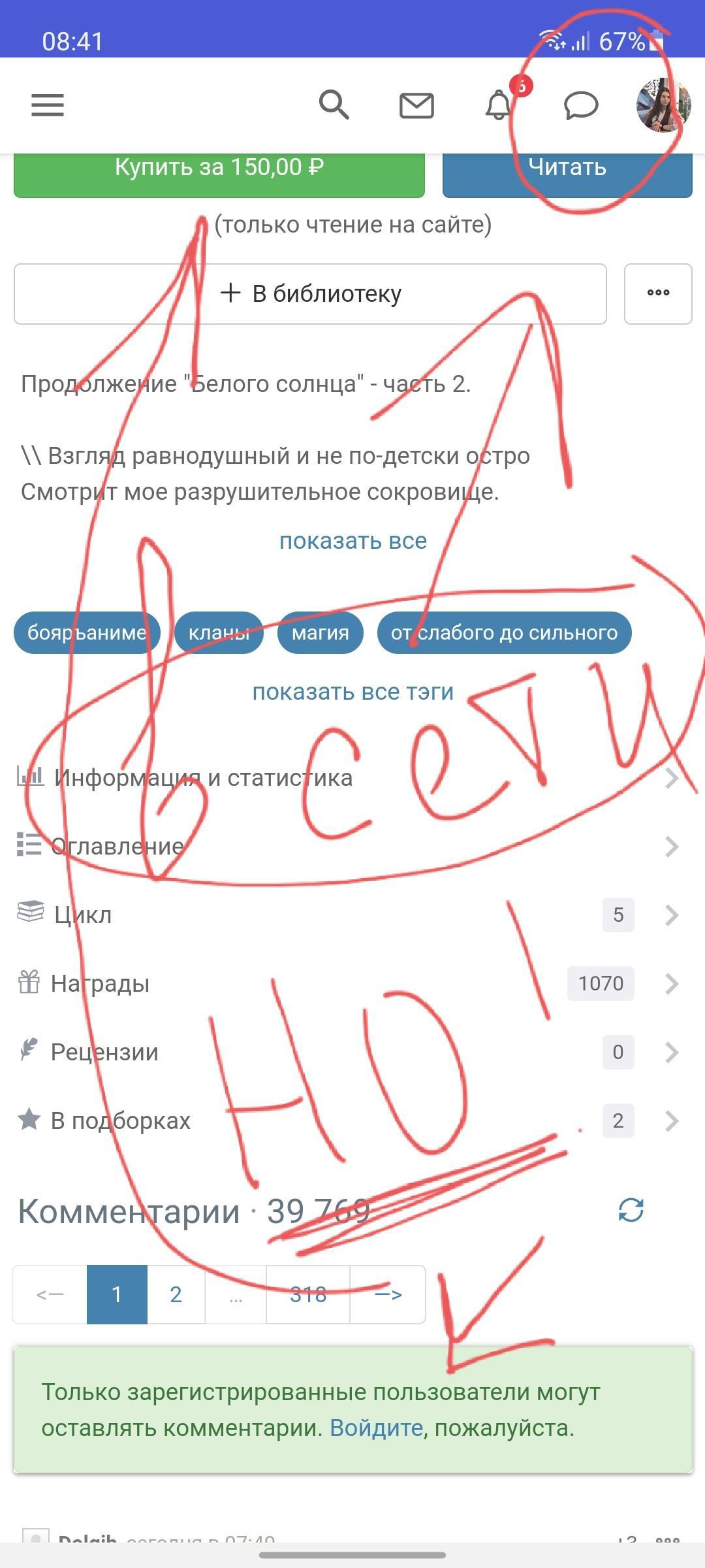 Сегодня приложение для телефона говорит, что я авторизована, но читать книги и оставлять комментарии могут только зарегистрированные пользователи. Т.е. Я как бы здесь, но не здесь 🤷‍♀️