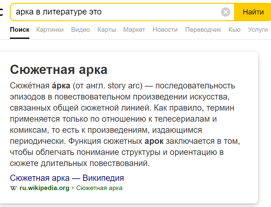 Вы интересовались вопросом? Если "арка" и правда настолько далекий от литературы термин, то почему ей дано такое определение? Я просто вообще не въезжаю.