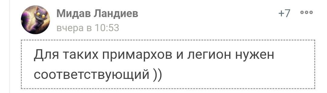 Спасибо, у меня как раз дневной лимит на сто экстерминатусов исчерпан.