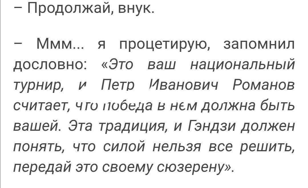 Как по мне, то неплохая идея для меча- выковать его из железа, полученного из крови токусимцев, которую они для этого дела пожертвуют