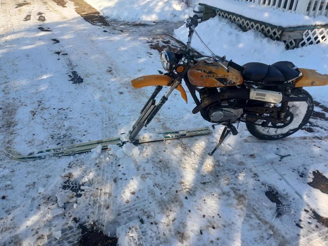 Деревенские парни в тайгу на покатушки выезжали, на восходах, с лыжей вместо переднего колеса.