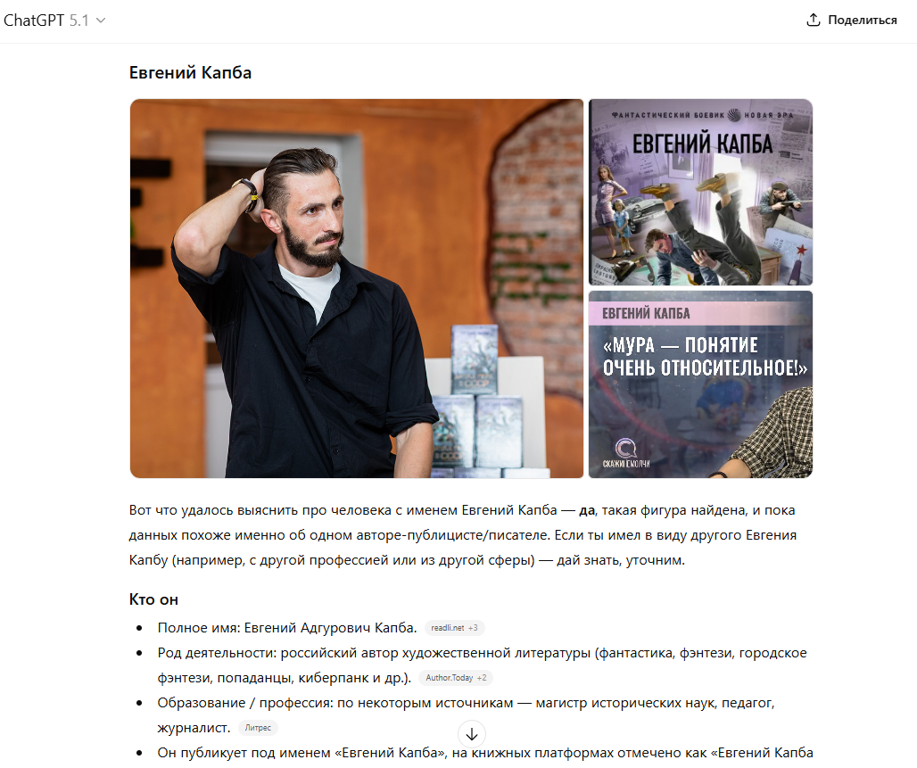 Тем не менее, в чём смысл спрашивать у модели, отключенной от поиска, информацию, которой у неё нет? Проверить, насколько настроен у неё баланс креативности/достоверности?