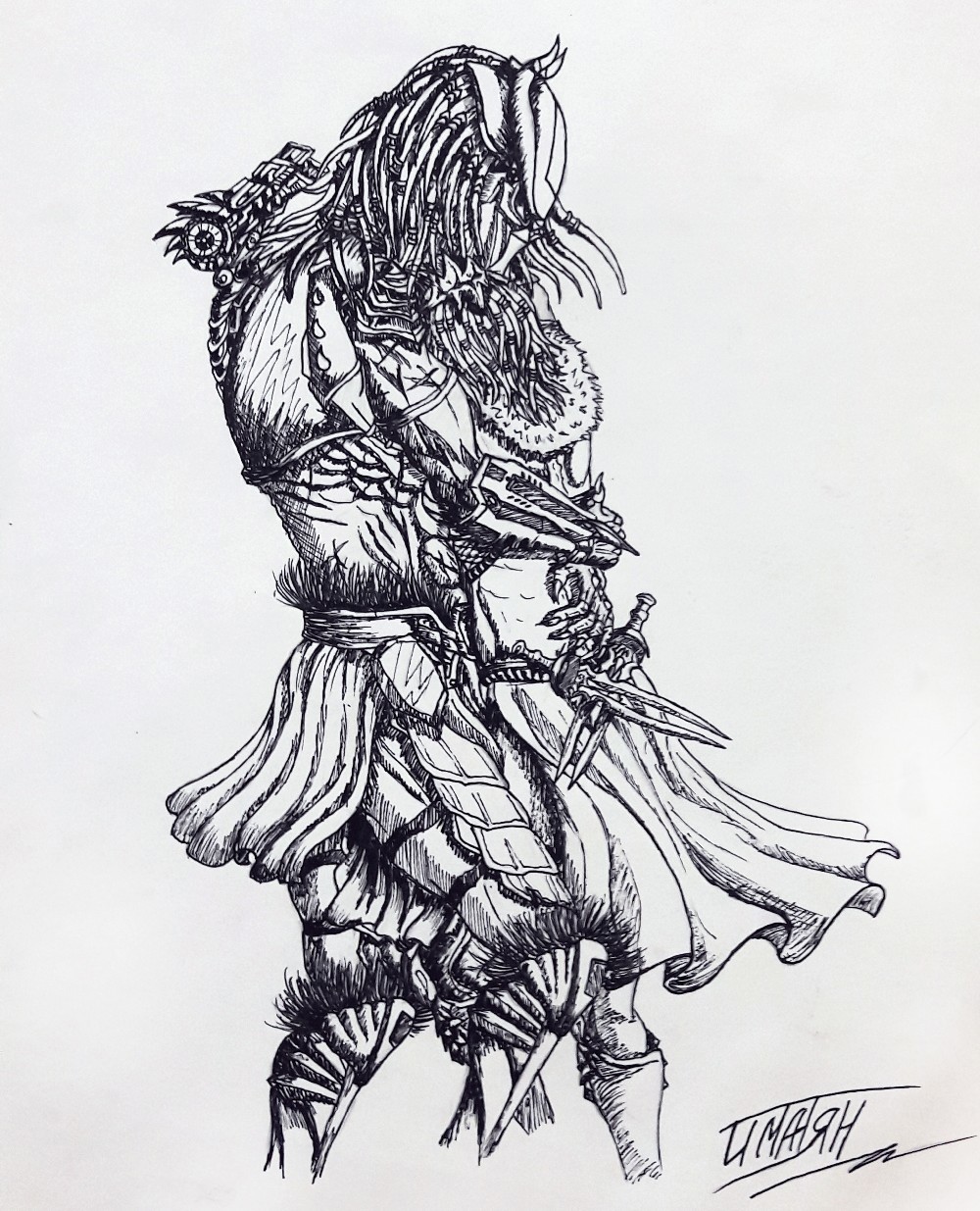 Этот рассказ создан по Вселенной фильмов "Чужой" и "Хищник". Однако все персонажи в данном произведении вымышленные. Поэтому стоит тэг au.