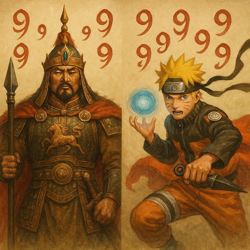 В мифопоэтической традиции многих культур число девять обладает особым сакральным статусом, символизируя полноту, предел, цикличность и божественную мощь. Это число, возведённое в степень (девять девяток), становится гиперболизированным выражением абсолютного совершенства, конечной точки перед переходом в новое качество (10 как возврат к 1 на новом уровне). Данное эссе исследует трансформацию этого архетипического символа на примере монгольской мифологии и его удивительные параллели в популярной манге и аниме «Наруто» Масаси Кисимото. Мы проследим, как концепция «драгоценности девять девяток» и образ девяти могущественных существ находят своё отражение в ключевых элементах вселенной «Наруто»: плаще Мудреца и Девяти Хвостатых Зверей, а также рассмотрим возможные культурные мосты между этими традициями.